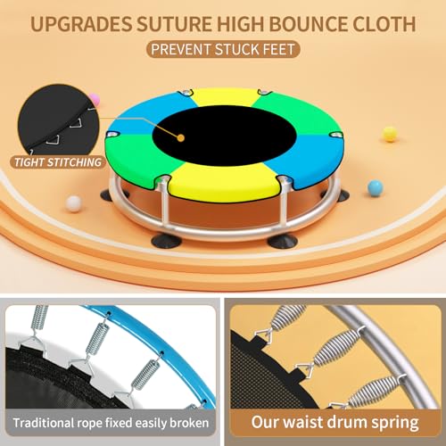 【 Upgrade non-gap 360° Enclosure Net safety design & leak-proof high bounce cloth 】 360° surround thick encryption protective net, upgrade bottom of the Enclosure Net can be removed, compared with ordinary trampoline upgrade to high elastic tightly stitched one jump cloth, 3 layers of thick safety pad, to prevent children from stepping on feet. Customized thick waist drum spring, lasting without deformation, for children indoors and outdoors to eliminate worries