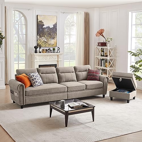 ☕Unique Design: With its sophisticated nailhead trim and line stiched tufted backrest, this 4-seater sectional couch is the perfect centerpiece for your dream living room. Deep seat space for 4-5 people, weight capacity is 1000lbs.