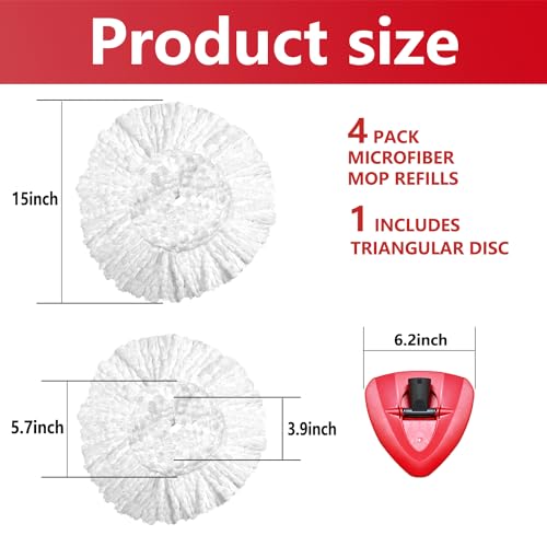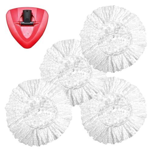 4 Pack Spin Mop Replacement Heads Microfiber Spin Mop Refills Includes 1 Base ,Easy Cleaning Mop Replacements Head, Spin Mop Refill for Floor Cleanin