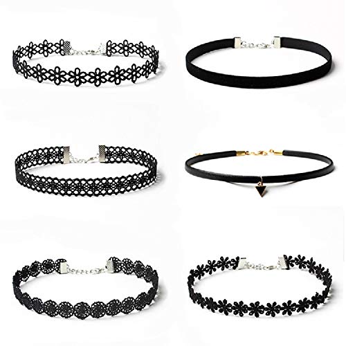 6 PCS Necklaces Black Velvet Choker Set Classic Gothic Tattoo Lace Chokers