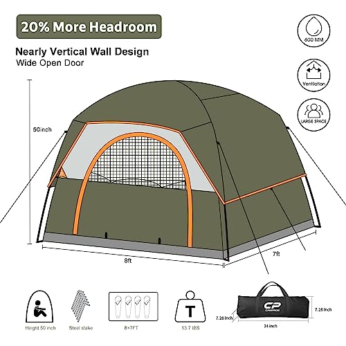 CAMPROS CP Tent 3/4/6/8 Person Camping Tents, Waterproof Windproof Family Dome Tent with Rainfly, Large Mesh Windows, Wider Door, Easy Setup, Portable with Carry Bag