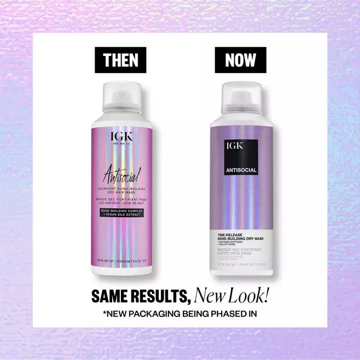 IGK ANTISOCIAL Bond-Building Dry Hair Mask | Repair + Soften + Shine | Vegan + Cruelty Free |