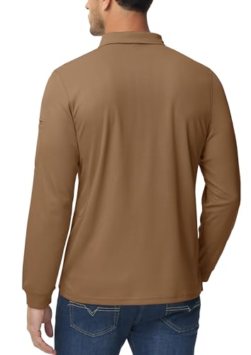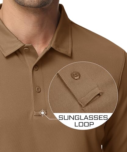 MAGCOMSEN Men’s Polo Shirts 3 Button Quick Dry Performance Long Sleeve Tactical Shirts Pique Jersey Golf Shirt