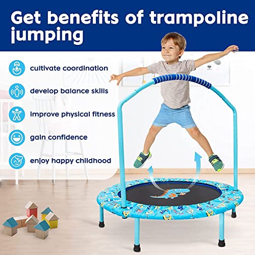 Mini Foldable Trampoline for Kids with Foam Handle,Trampoline for Kids Indoor &Outdoor with Adjustable Handle Fold up Trampoline for Toddlers Age 2-5 (Blue)