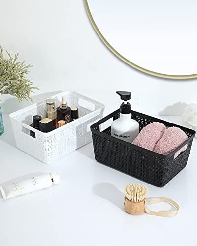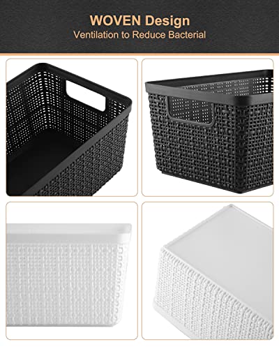 Plastic Storage Bins 6 Packs Set-Storage Baskets For Organizing, Woven Design Storage Organizer Bins and Basket For Pantry Shelves Drawers Desktop Closet Playroom Classroom Office, Black