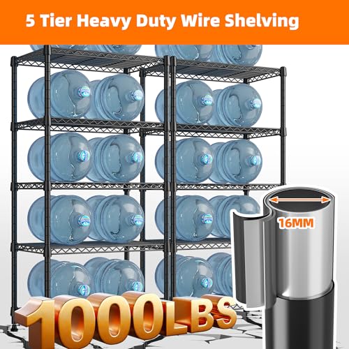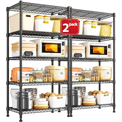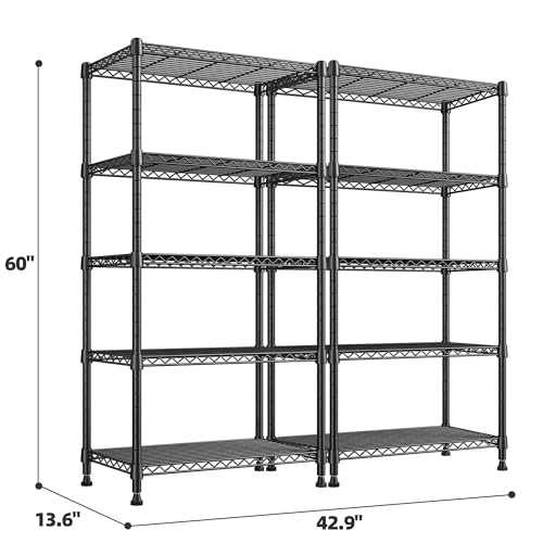 REIBII 1000LBS Wire Shelving Unit, 5 Tier Storage Shelves Adjustable Metal Shelving Rack Shelf Sturdy Shelving Units Garage Shelving Closet Shelves Pantry Shelf, 59.4 “H X 13.6” D X 21.5 “W, 2 Pack