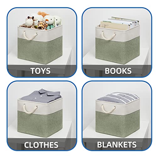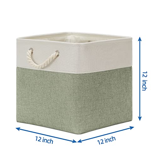 Temary Cube Storage Baskets for Shelves 12 Inch Storage Cubes 4pack Fabric Storage Baskets for Organizing Clothes, Closet Baskets with Rope Handles for Home (White&Green)