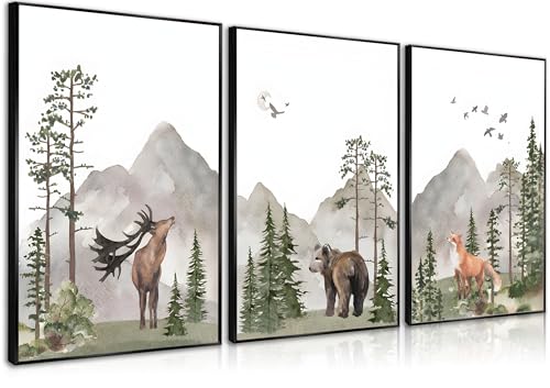 Quality:This watercolor woodland animals wall art canvas are printed with high definition giclee craft, on high quality firm painting canvas,ensuring that the high-definition pictures retain their brilliance for a long time. High quality mountain animals nursery decor as a unique art style would be the perfect art supplement on the wall, as a great unisex gift for a kid who wants to get a joyful safari animal theme dream room.